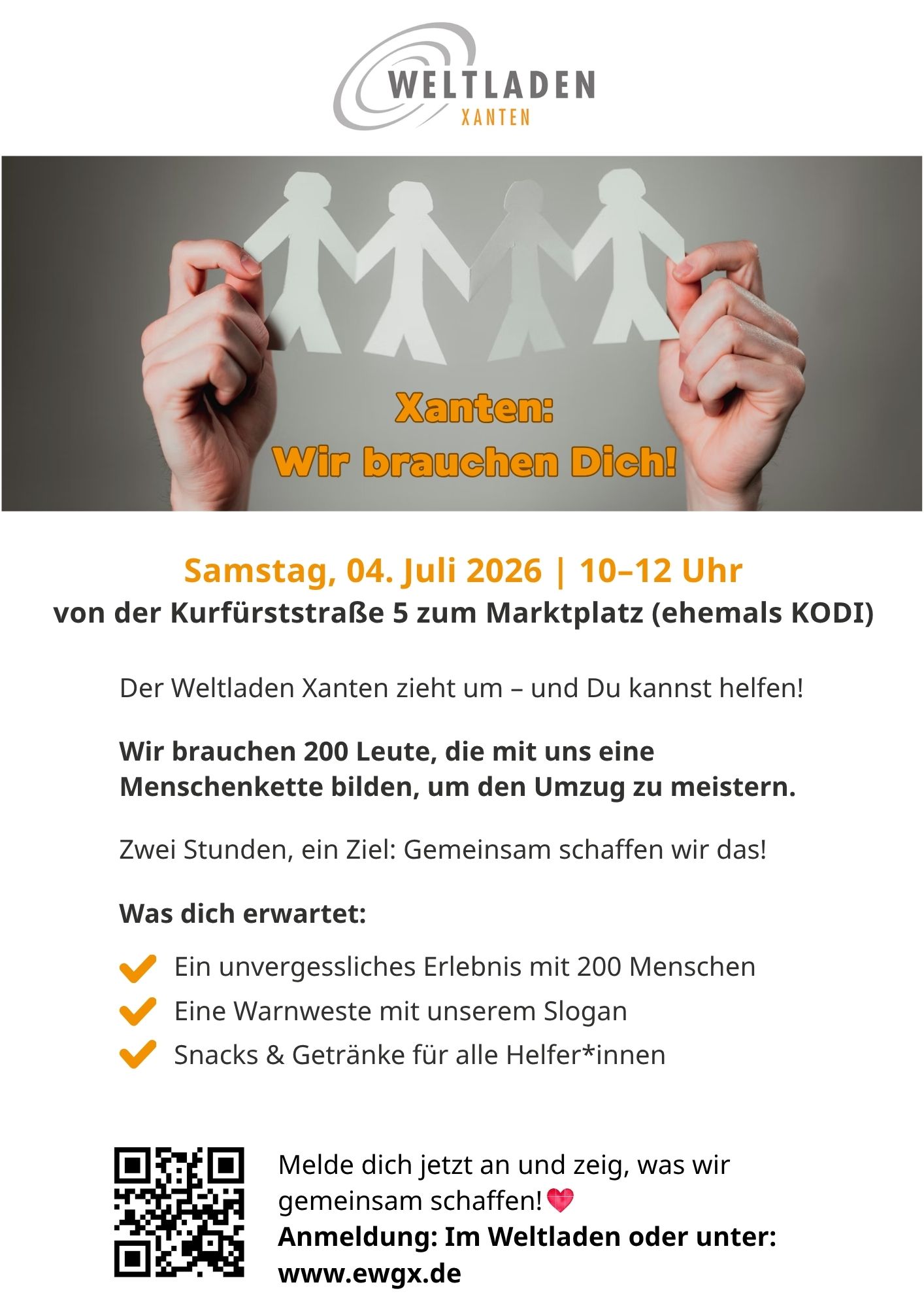 Nur noch einen Schritt und du reihst dich ein, bei unserer Menschenkette am 04. Juli dabei zu sein.