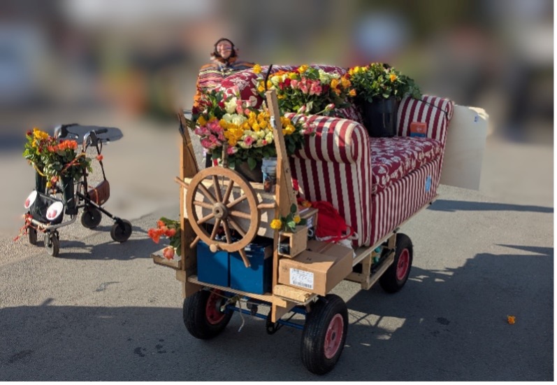 Die 20köpfige Fußgruppe „Schöner Wohnen“ machte es sich beim traditionellen Xantener Blutwurstumzug am Karnevalssonntag nicht nur in Omas alten Möbeln fair-dammt gemütlich!